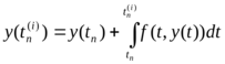 Заменяя в этом равенстве для каждого i входящий в него интеграл соответствующей квадратурной формулой с узлами tn(1), tn (2), ... , tn(i-1), получим приближенные равенства:
