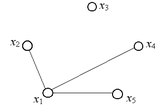 У неориентированного графа, изображенного на рис. 3.8 две компоненты связности. Первая компонента связности включает вершины x1, x2, x4, x5, а вторая состоит из одной вершины x3.