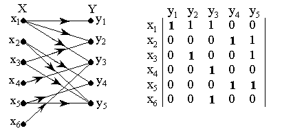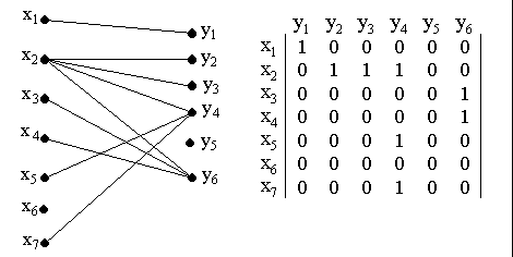 Пример двудольного графа и его матрица смежности показаны на рис. 12.1.