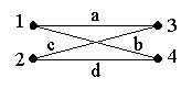 Для простоты будем рассматривать неориентированный двудольный граф, вершины которого обозначены натуральными числами 1, 2, 3,..., а ребра строчными буквами латинского алфавита.
