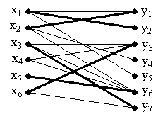 а рис. 12.5 приведен граф, соответствующий матрице табл. 12.8, на котором максимальное паросочетание выделено толстыми линиями.