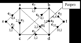 в S ориентирована только дуга e9. Следовательно, пропускная способность разреза будет равна