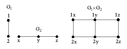 В произведении графов вершины обозначаются парами ab, где символы a и b – обозначения вершин в G1 и G2 соответственно.