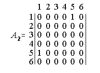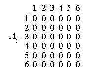 Число строк таблицы равно мощности семейства НМВ, каждая строка обозначается именем соответствующего независимого множества вершин, число столбцов равно числу вершин графа и столбцы обозначаются именами вершин, элемент таблицы ai,j = 1, если вершина xj входит в множество