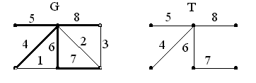 Удаляя произвольную ветвь bi из T, получаем лес с двумя компонентами, т. е. каждое ребро bi есть разрез T по некоторому разбиению вершин V1, V2.