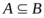 Множество А называется подмножеством множества В (обозначается