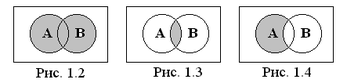 ) называется множество, состоящее из всех тех элементов, которые принадлежат хотя бы одному из множеств A, B (рис. 1.2):