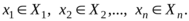 Прямое (декартово) произведение множеств X1, X2,…, Xn - это множество элементов вида