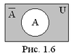 ) называется множество всех элементов, не принадлежащих A, но принадлежащих U (рис. 1.6):