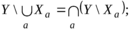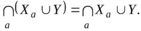 Пусть дано множество U (конечное или бесконечное) и из элементов этого множества образована некоторая совокупность множеств Xa., называемая семейством множеств. Для семейства множеств справедливо