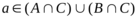 Из определения операции объединения следует, что элемент а принадлежит объединению множеств А и