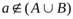 Элемент а не принадлежит объединению двух множеств, если он не принадлежит ни одному их них. Тогда