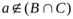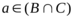 Последнее условие выполняется, если а не принадлежит В, или С, или им обоим, т.е.