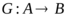 Будем обозначать отображение множества A в B или A на B так