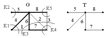Множество {K1, K2, …, Kn–1} всех фундаментальных разрезов графа G называется фундаментальным множеством разрезов графа G относительно остова T.