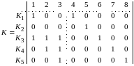 | K1 | h1,1 | . | h1,V* | 1 | 0 | 0 | . | 0 | |