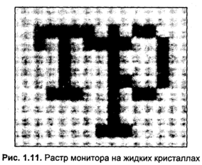 Растровый характер изображения монитора на жидких кристаллах (рис. 1.10) выражен значительно четче, нежели монитора на электронно-лучевой трубке. Четкость отдельных пикселов обуславливает заметный лестничный эффект наклонных линий (рис. 1.11).