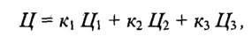 где Ц1, Ц2, Ц3 — некоторые базисные, линейно независимые цвета, коэффициенты К1, К2 и лез указывают количество соответствующего смешиваемого цвета. Линейная независимость цветов Ц1, Ц2, Ц3 означает, что ни один из них не может быть выражен взвешенной суммой (линейной комбинацией) двух других.