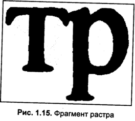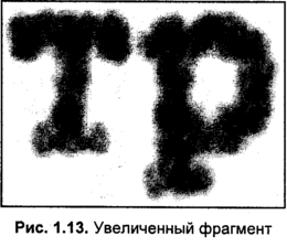 Лазерные принтеры, как правило, безупречно отрабатывают свое паспортное разрешение. Немаловажным является то, что качество печати стабильно и практически не зависит от качества бумаги. Принтеры данного типа вне конкуренции (по крайней мере, в настоящее время) по быстродействию и качеству черно-белой печати среди других типов принтеров. Более дорогие модели лазерных принтеров обладают в несколько раз большим разрешением, при этом качество печати, как правило, возрастает соответственно паспортному разрешению. Оптического разрешения сканера в 600 dpi (2400 dpi интерполяция) уже не достаточно, чтобы точно отобразить фрагмент растра в мельчайших деталях (рис. 1.15).