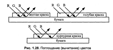 Для того чтобы разобраться с поглощением цветов, рассмотрим рис. 1.28.