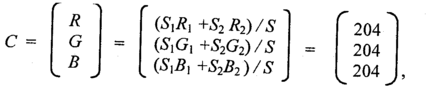 где C1 и C2— цвета, которые графическое устройство способно непосредственно воспроизвести для каждого пиксела. Числовые значения С, C1 и C2 можно рассчитать в полутоновых градациях или в модели RGB — отдельно для каждой компоненты.