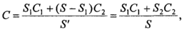 Расчет цвета, соответствующего одной из комбинаций пикселов в ячейке, можно выполнить таким образом. Если пикселы ячейки могут быть только двух цветов (C1 и C2), то необходимо подсчитать часть площади ячейки для пикселов каждого цвета. Цвет ячейки (С) можно оценить соотношением