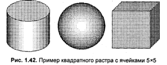 Для создания такого изображения специально была выбрана небольшая разрешающая способность, чтобы подчеркнуть структуру изображения. Ячейки образовывают достаточно заметный квадратный растр (рис. 1.42).