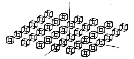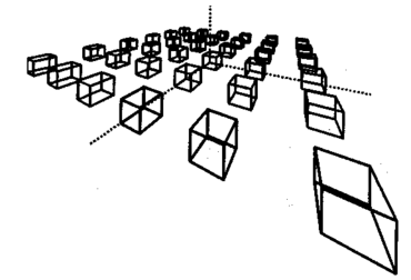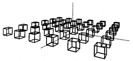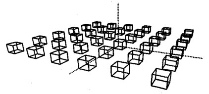 Примеры изображений в различных проекциях. Приведем примеры изображений одинаковых объектов в различных проекциях. В качестве объектов будут кубы одинакового размера. Положение камеры определим углами наклона α = 27°, β = 70°.