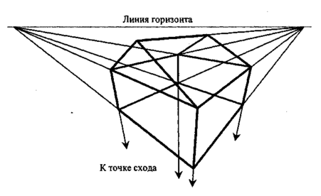 □ параллельные прямые изображаются сходящимися в одной точке.