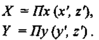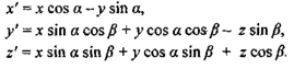 Преобразование координат может быть описано таким образом. Сначала определяются (x', у', z′).