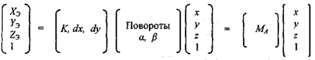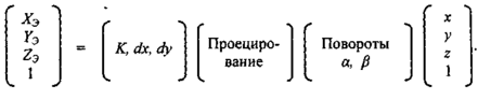 Для центральной проекции иногда используют матричную форму с применением обобщенных однородных нелинейных координат [28, 32].