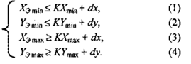 Решением системы (1)—(4) для K будет: К≤ min {Кх, Ку} = Кmin.