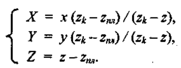 Запишем преобразования координат перспективной проекции в виде: