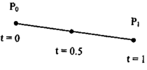 Рис. 3.6. Кривая Безье (т = 1) т = 2 (по трем точкам, рис. 3.7)