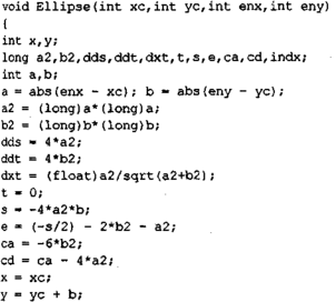 Инкрементный алгоритм для эллипса подобен алгоритму для круга, но более сложный. Этот алгоритм приведен в [33].