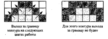 Пикселы контура — это граница, за которую нельзя выходить в ходе последовательного перебора всех соседних пикселов. Соседними могут считаться только четыре пиксела (справа, слева, сверху и снизу — четырехсвязность), или все восемь пикселов (восьмисвязность). Не всякий контур может служить границей закрашивания (рис. 3.11).