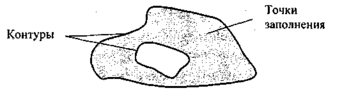 Для вывода точек заполнения известны методы, разделяющиеся в зависимости от использования контура на два типа— алгоритмы закрашивания от внутренней точки к границам произвольного контура и алгоритмы, которые используют математическое описание контура.