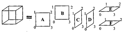 Второй способ описания. Для такого варианта координаты восьми вершин сохраняются без повторов. Вершины пронумерованы (рис. 4.5), а каждая грань дается в виде списка индексов вер