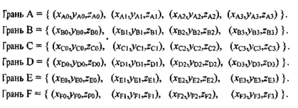 Третий способ описания (рис. 4.7). Этот способ (в литературе его иногда называют линейно-узловой моделью) основывается на иерархии: вершины-ребра-грани.