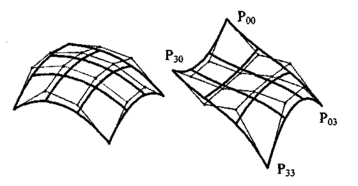 Кубический сплайн Безье соответствует значениям т = 3, п = 3. Для его определения необходимо 16 точек-ориентиров Рij (рис. 4.1); коэффициенты Сim Сjn равны 1,3,3,1 при i,j = 0,1,2,3.