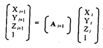 Таким образом, матрица для системы координат нового луча образуется умножением матрицы предыдущего луча на матрицу сдвига и поворота.