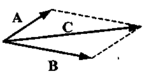 2. Сложение векторов С = А+В. Результат сложения — это вектор, соответствующий одной из диагоналей параллелограмма, сторонами которого являются векторы А и В (рис. 4.32). Все три вектора лежат в одной плоскости. Для радиус-векторов А и В координаты вектора результата определяются так: