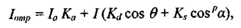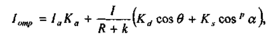 где константы Kd, Кs определяют отражательные свойства материала. Согласно этой формуле интенсивность отраженного света равна нулю для некоторых углов θ и а. Однако в реальных сценах обычно нет полностью затемненных объектов, следует учитывать фоновую подсветку, освещение рассеянным светом, отраженным от других объектов. В таком случае интенсивность может быть эмпирически выражена следующей формулой: