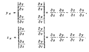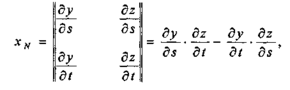 Вычисление координат вектора нормали. Рассматривая модели отражения света, вы, наверное, обратили внимание на то, что нормаль к поверхности является важным элементом. Определение вектора нормали к поверхности в заданной точке может быть выполнено различными способами. В значительной степени это определяется типом модели описания поверхности. Для поверхностей, заданных в аналитической форме, известны методы дифференциальной геометрии, которые основываются на вычислении частных производных функций описания [19]. Например, если поверхность задана параметрическими функциями