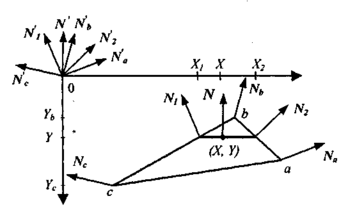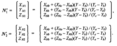 где XNa, YNa, ZNa, XNh, YNb, ZNb, XNc, YNc и ZNc — координаты векторов N'a, N'b и N'c. Теперь найдем координаты вектора N':