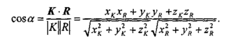 Теперь осталось найти косинус угла между отраженным лучом и направлением камеры. Обозначим радиус-вектор, направленный на камеру, как К. Искомый косинус угла найдем, используя скалярное произведение векторов К и R: