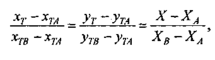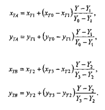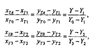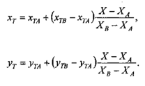 вычисление координат (х Т, у Т), соответствующих текущим пикселам горизонтали, можно выполнять делением отрезка (А-В) пропорционально X: