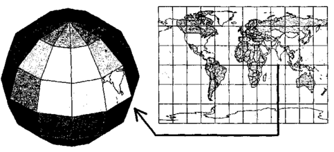 При наложении текстуры на отдельные грани шара совершенно необязательным является склеивание карты мира в один растр текстуры. Может оказаться удобным для каждой грани иметь отдельную текстуру. Это относится и к случаю, когда текстуры хранятся в файлах.