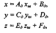 Рассматривая эти равенства как две системы линейных уравнений третьего порядка относительно {а, b, с) и (d, e, f), можно найти искомые коэффициенты преобразования — подобно тому, как это сделано в разд. 3.7.