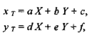 для каждого полигона грани определить формулы преобразования координат (X, Y) в (х Т, у Т) в виде